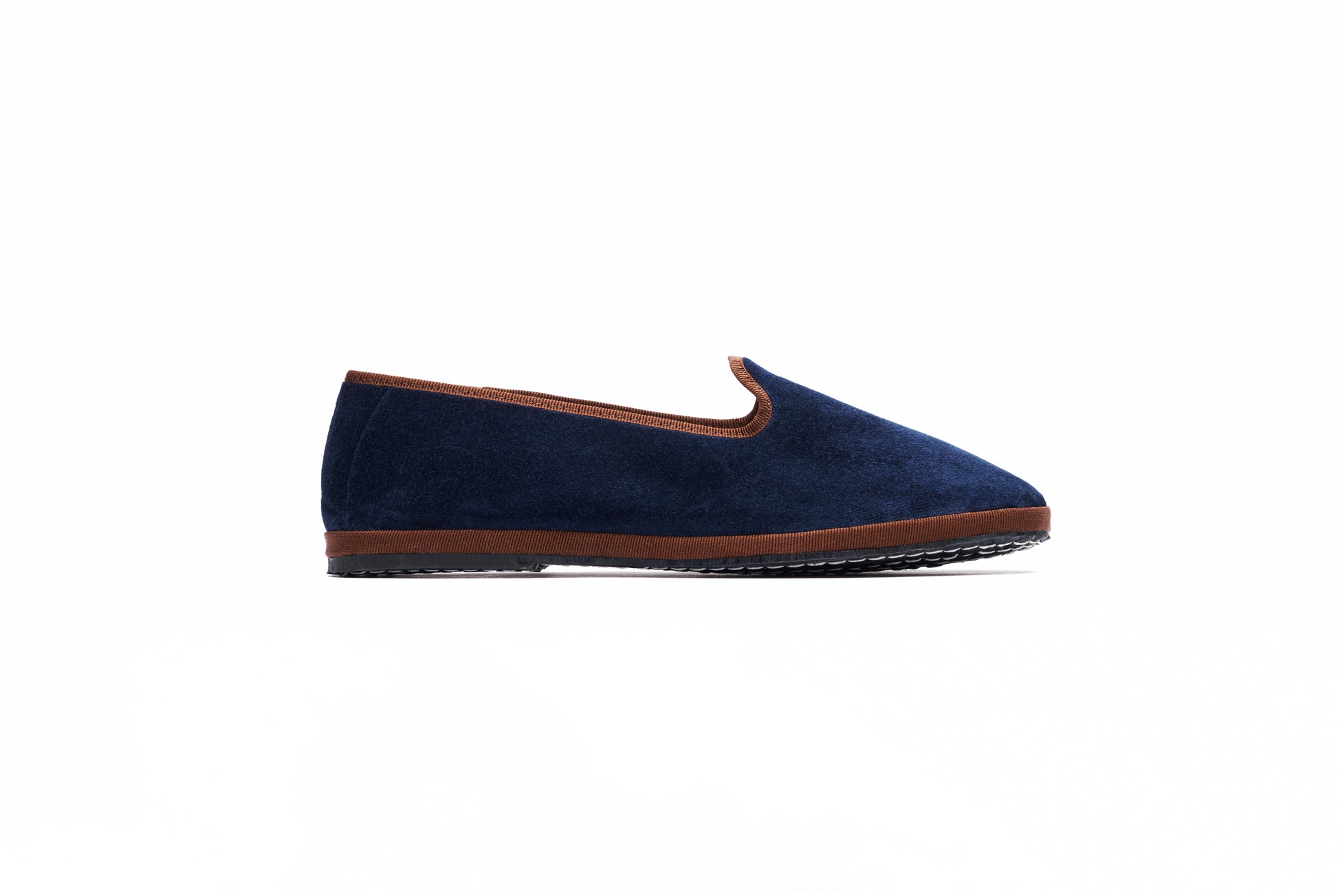 Handcrafted in Friuli, Italy, this timeless slipper features soft denim-blue velvet contrasted with rich brown grosgrain. Designed as part of our Evergreen Collection, it's made for effortless style—day or night, season after season. Elegant indoors, bold outdoors.