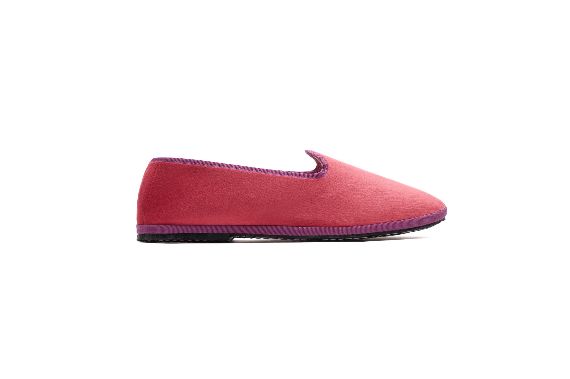 Handcrafted in Friuli, Italy, this timeless slipper features salmon pink velvet contrasted with rich violet grosgrain. Designed as part of our Evergreen Collection, it's made for effortless style—day or night, season after season. Elegant indoors, bold outdoors.